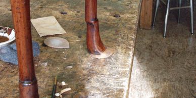 The most common repair in the studio is re-gluing loose chairs and repairing breaks. Out of all the furniture, chairs get the hardest use. Early chairs often exhibit multiple repairs from earlier repair attempts.