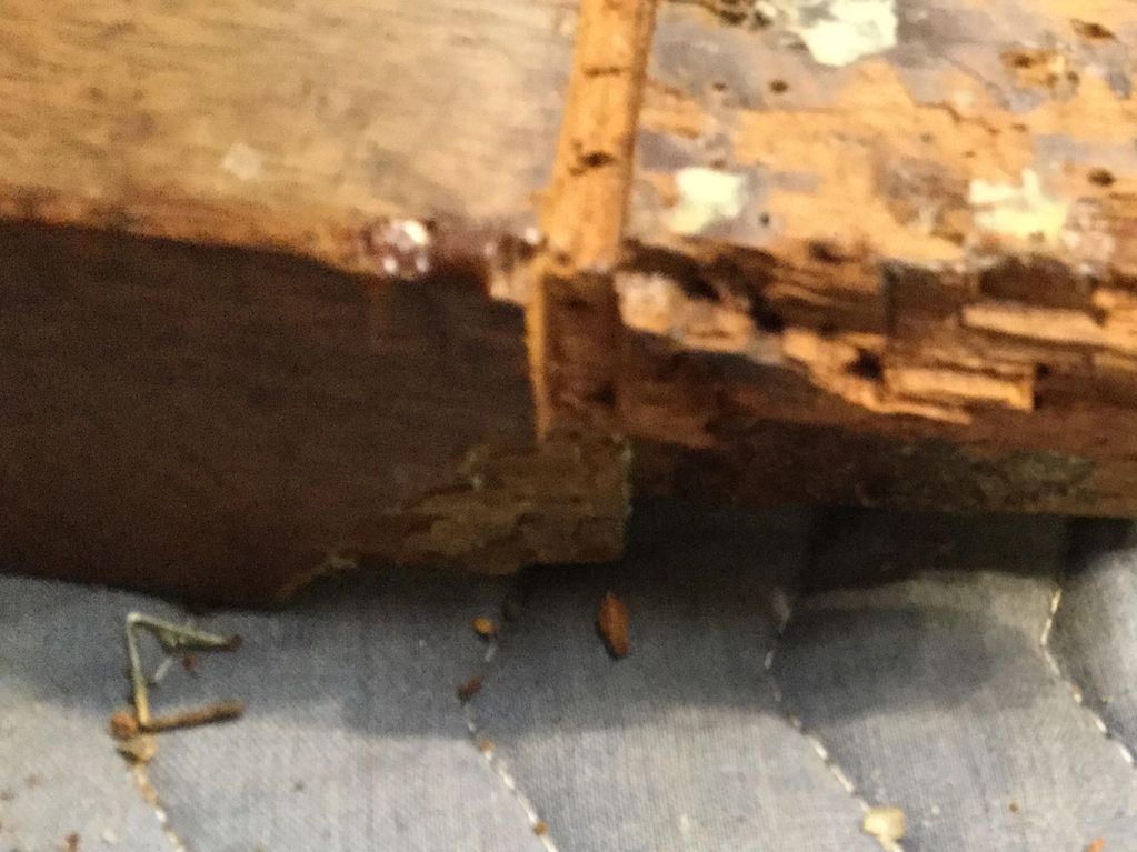 The upholstered side chair pictured had all manner of restorations from metal plates to gluing and stapling cardboard. Worse, the last upholsterer cut a ⅛" deep groove around the leg to house the welt. This reduced the cheeks at the bottom of the mortise by half, leaving only ⅛" of wood between the outside of the frame and the tenon at that spot.
