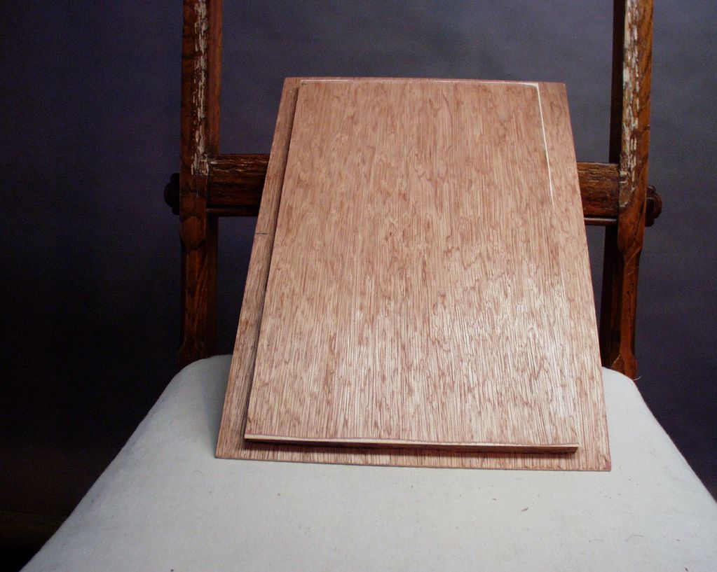 In this particular process, the veneer was glued using hot hide glue. Once I had the veneer initially attached, I added a piece of hot copper between the veneer and the caul so that the glue would remelt allowing the veneer to reposition and form a much better glue line.